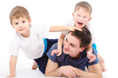 Zdjęcie "Ojciec z jego dwóch synów, leżącego" może być wykorzystywane do celów osobistych i komercyjnych zgodnie z warunkami zakupionej licencji Royalty-free. Obraz jest dostępny do pobrania w jakości wysokiej rozdzielczości do 5760x3840.
