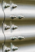 Zdjęcie "Zakrętki na metalowej ścianie stalowej." może być wykorzystywane do celów osobistych i komercyjnych zgodnie z warunkami zakupionej licencji Royalty-free. Obraz jest dostępny do pobrania w jakości wysokiej rozdzielczości do 5760x3840.