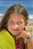 kaukaski mało suczke uśmiechający się na tle błękitnego morza