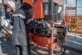 Zdjęcie "Morski pracownik platformy wiertniczej przygotowuje narzędzia i sprzęt do odwiertów perforacyjnych ropy naftowej i gazu na platformie wiertniczej. Tworzę połączenie z rurami wiertniczymi. Widok na połączenie rurociągu wiertniczego pomiędzy podstawkami" może być wykorzystywane do celów osobistych i komercyjnych zgodnie z warunkami zakupionej licencji Royalty-free. Obraz jest dostępny do pobrania w jakości wysokiej rozdzielczości do 5760x3840.