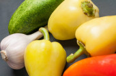 Zdjęcie "Zestaw różnych świeżych, całych dojrzałych warzyw leży na ciemnym, betonowym stole. Kopiuj miejsce dla tekstu" może być wykorzystywane do celów osobistych i komercyjnych zgodnie z warunkami zakupionej licencji Royalty-free. Obraz jest dostępny do pobrania w jakości wysokiej rozdzielczości do 5760x3840.