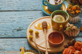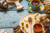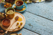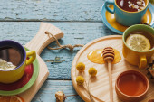 Kubki z ziol i kawałki cytryna, suszone zioła i inne dekoracje