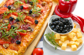 Pizza calzone na desce w serwetkę na drewnianym stole