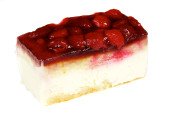 sernik z świeże truskawki na talerzu biały na białym tle