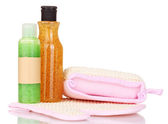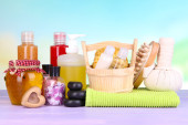 drewniane pudełko z produktów kosmetycznych na białym tle