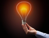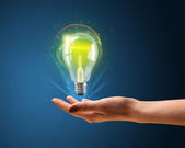 Atrakcyjny mężczyzna trzymający realistyczną żarówkę 3D