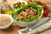 Sałatka z tuńczyka z mais na pokładzie drewna