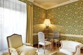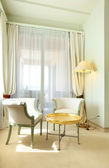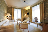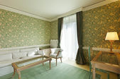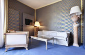 luksusowe wnętrza mieszkania, komfortowy salon klasyczny, biały divan