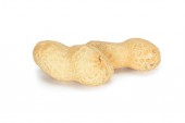Orzeszki ziemne. Cała nakrętka wyizolowana na białym tle bez cienia. Orzechowe makro bliska. Pełna głębia ostrości.