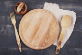 Stare drewniane naczynia kuchenne na drewnianej łyżka stołowa widelec corkscr