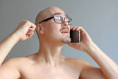 Młody przystojny mężczyzna w czarnych okularach rozmawia przez telefon, SMI