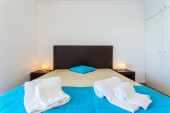 Przytulny pokój w odcieniach zieleni i dwa wygodne łóżka. The