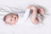 Niezrównany dziewczynka leżąc uśmiechając się. szczelnie-do góry.