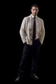 młody człowiek na białym