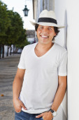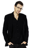 młody człowiek na białym