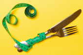 Zdjęcie "Widok z góry koncepcji otyłości z widelcem i taśmy pomiarowej na drewnianym tle z przestrzenią na kreatywne pomysły" może być wykorzystywane do celów osobistych i komercyjnych zgodnie z warunkami zakupionej licencji Royalty-free. Obraz jest dostępny do pobrania w jakości wysokiej rozdzielczości do 5760x3840.