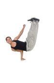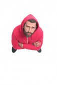 Widok z góry. facet w czerwonej kurtki patrząc w przyszłość