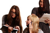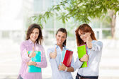 szczęśliwi, podekscytowani, młoda kobieta, wskazując na miejsce
