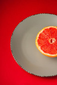 Widelec stołu sztućców i nóż na czerwonym obrus, widok z góry, płaski lay