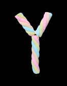 Marshmallows alfabetu "V" izolowane na czarnym tle.