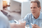Zdjęcie "Wise Senior bezpośrednio patrząc na swojego lekarza, podczas gdy ona pracuje z nim" może być wykorzystywane do celów osobistych i komercyjnych zgodnie z warunkami zakupionej licencji Royalty-free. Obraz jest dostępny do pobrania w jakości wysokiej rozdzielczości do 5760x3840.