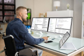 Zdjęcie "Biznesmen, korzystanie z komputerów pc na biurku w biurze" może być wykorzystywane do celów osobistych i komercyjnych zgodnie z warunkami zakupionej licencji Royalty-free. Obraz jest dostępny do pobrania w jakości wysokiej rozdzielczości do 5760x3840.