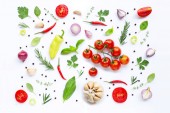 Różne świeże warzywa i zioła na białym tle. Zdrowe