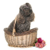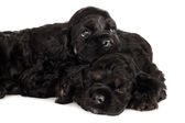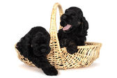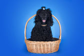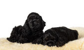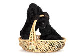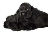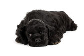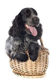 ładny amerykański cocker spaniel szczenię spanie w koszyku.