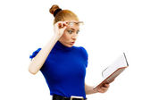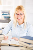 dziewczyna ładna studentów stos książek na białym tle