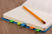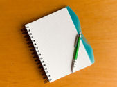 notatnik i długopis na drewnianym stole