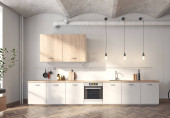 Zdjęcie "nowoczesny skandynawski styl kuchnia wnętrze." może być wykorzystywane do celów osobistych i komercyjnych zgodnie z warunkami zakupionej licencji Royalty-free. Obraz jest dostępny do pobrania w jakości wysokiej rozdzielczości do 5760x3840.