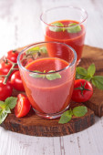 Sok pomidorowy w szkle z selera na rustykalny drewniany stół