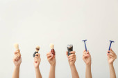 Zdjęcie "Kosmetyczne pędzle do makijażu w kobiecej dłoni na niebieskim tle." może być wykorzystywane do celów osobistych i komercyjnych zgodnie z warunkami zakupionej licencji Royalty-free. Obraz jest dostępny do pobrania w jakości wysokiej rozdzielczości do 5760x3840.
