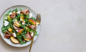 Zdjęcie "Sałatka z rukoli, pomidorów i prosciutto. Dania kuchni włoskiej. Zdrowe odżywianie. Diety." może być wykorzystywane do celów osobistych i komercyjnych zgodnie z warunkami zakupionej licencji Royalty-free. Obraz jest dostępny do pobrania w jakości wysokiej rozdzielczości do 5760x3840.