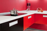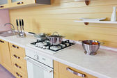 Luksusowa biała kuchnia i pokój dzienny w wielkim domu
