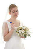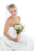 panna młoda z bukietem