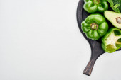 Zdjęcie "Widok z góry awokado, papryka, kiwi, limonka, cukinia i zieleni na patelnie pizzy " może być wykorzystywane do celów osobistych i komercyjnych zgodnie z warunkami zakupionej licencji Royalty-free. Obraz jest dostępny do pobrania w jakości wysokiej rozdzielczości do 5760x3840.