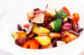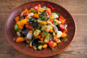 Smażona cukinia z czerwonej papryki, cebuli, pomidorów i innych warzyw