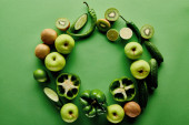 panoramiczny strzał papryki, ogórki, kiwi, limonka, jabłka i awokado