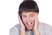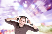 Młody człowiek słuchający muzyki