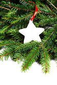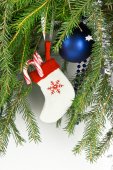 Boże Narodzenie kolorowy pociąg na gałęzie jodły z śniegu dekoracje