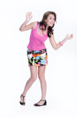 młoda kobieta emocjonalne z torby papierowe