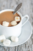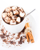 kubek gorącej czekolady, kakao i puszyste mini marchmallows.