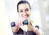 piękna kobieta podnoszenia hantle w klubie zdrowia