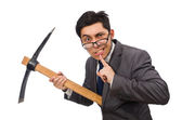 Zdjęcie "Zabawny biznesmen z siekierą na białym" może być wykorzystywane do celów osobistych i komercyjnych zgodnie z warunkami zakupionej licencji Royalty-free. Obraz jest dostępny do pobrania w jakości wysokiej rozdzielczości do 5760x3840.