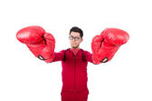 Kobieta w rękawiczkach bokserskich na białym