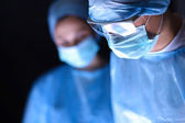zbliżenie chirurg noszenie maski i szkła powiększające
