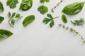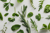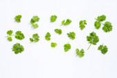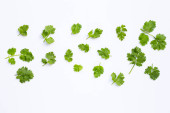Widok z góry świeżą kolendry, pietruszki i tymianku gałązki na białym tle