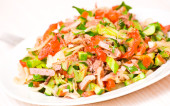 świeże sałatki z kurczaka, szynką i warzywami
