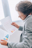 Widok z góry biznesmen dokument z listów w pobliżu Kalkulator i laptop